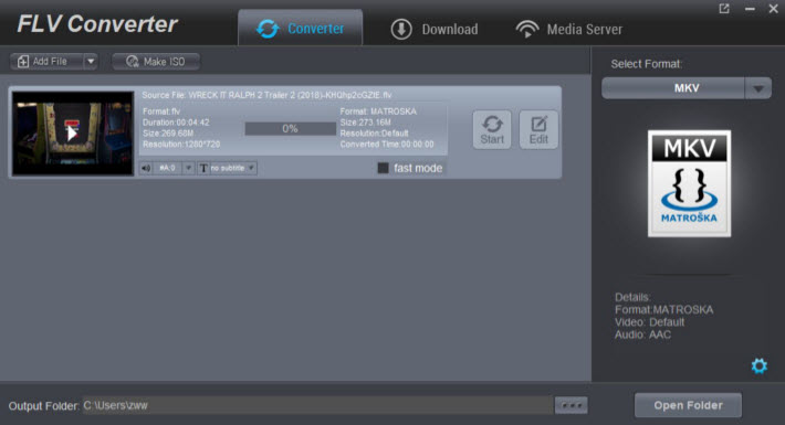 As an all-around video converter software program, Dimo FLV Video Converter enables you to convert video with great facility: FLV to MP4, FLV to MKV, FLV to MP4, etc. Conversions between audio formats can also be done and you convert video to audio to get audio off video file for music listening. The output files converted by this media converter will playable on various devices, editable on non-linear editing system, streamable on media servers, etc.