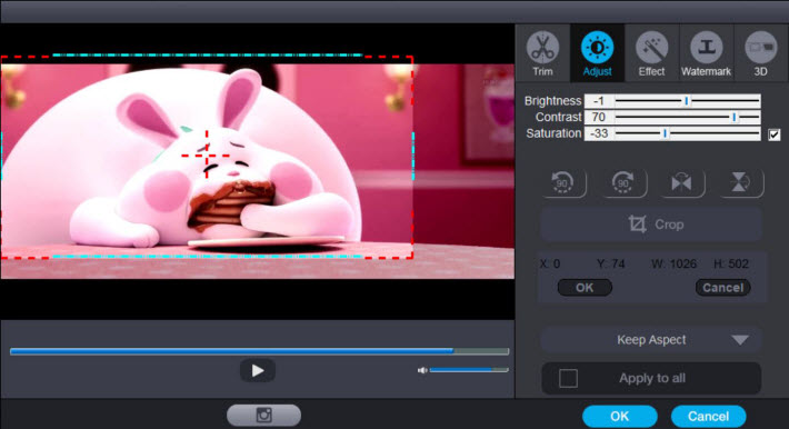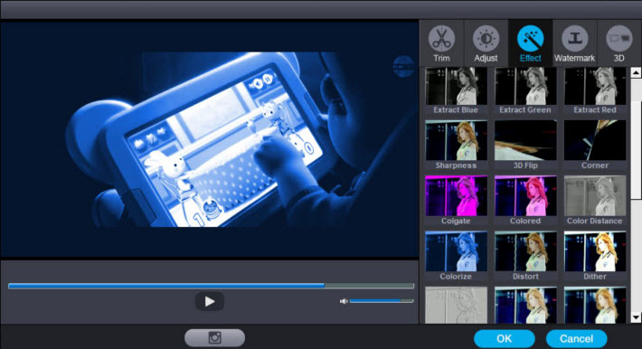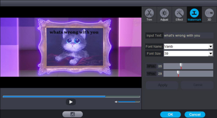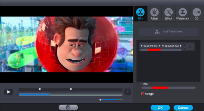 To get media files with your own patent, this video converter offers a video editor, which allows you to trim video length, crop video size, add text watermark, adjust video effect/brightness/saturation/contrast, etc. The 2D to 3D conversion function does you a favor to obtain life-like 3D video.