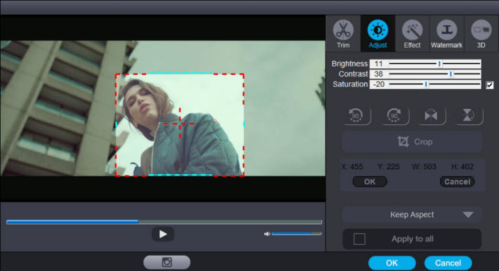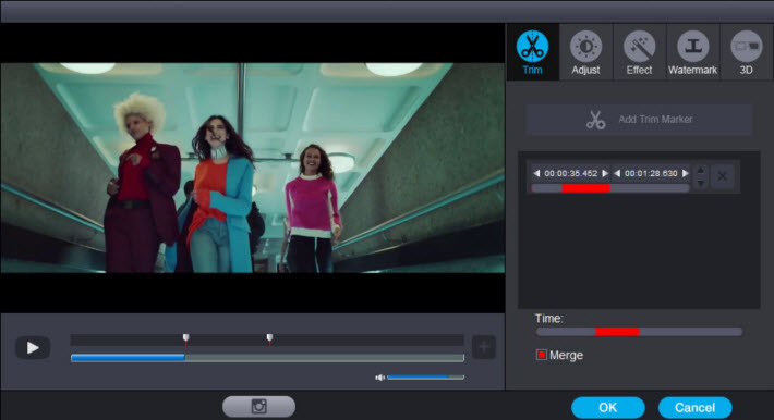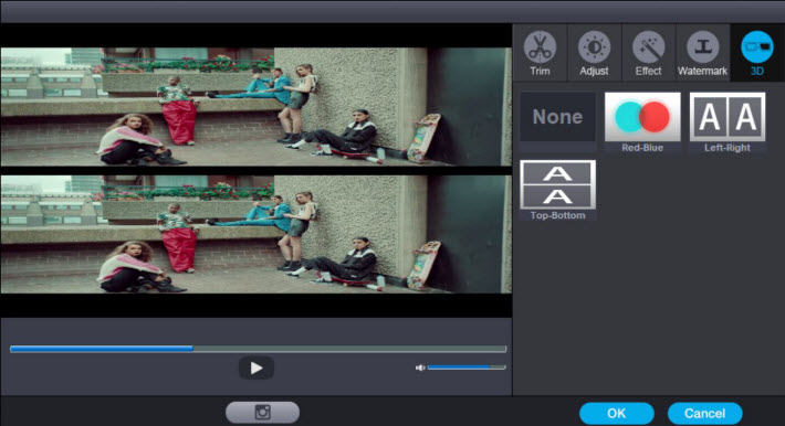 This MP4 Converter comes with multiple editing functions allowing you to customize the output video and audio effects. You can adjust the HD/SD/4K video's brightness, contrast, saturation, volume and special effects to meet your satisfaction. What's more, you are able to crop video to remove the unnecessary part of video to better fit your player, and clip video, merge segments and add personal watermark. Also, you are free to handily bring 3D effect to the output video.