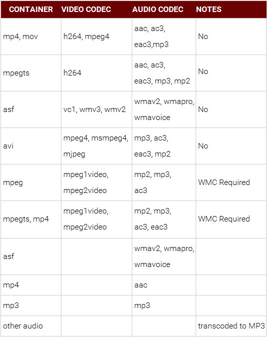 Tips: the video and audio file formats Plex supports are as below picture:
